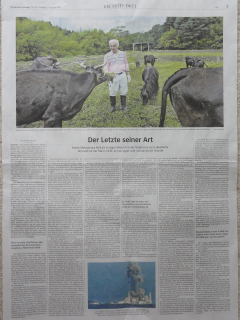 クライン記者は、彼の住居と牧場を訪ね、通訳を通しながらでも、松村さんの振る舞い、生活と考えを、生き生きと鋭く観察し、大変優れたルポとなっています。 ここの記事は同紙のサイトでは読めませんので、ドイツ在住のどなたかに、翻訳していただきたいものです。ある程度文学作品の翻訳能力のある方に勧めます。普通の新聞記事とは質が別ですので。