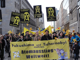 フクシマから5年、チェルノブイリから30年の今年3月19日、ベルリンでも恒例の反脱原発デモが行われました。一昨年から日本人のグループSayonara Nukes Berlinが持ち込んだカザグルマデモが今年はすっかり定着して「世界中の原発をなくそう!」とのスローガンで、例年のようにとても元気に明るく行われました。